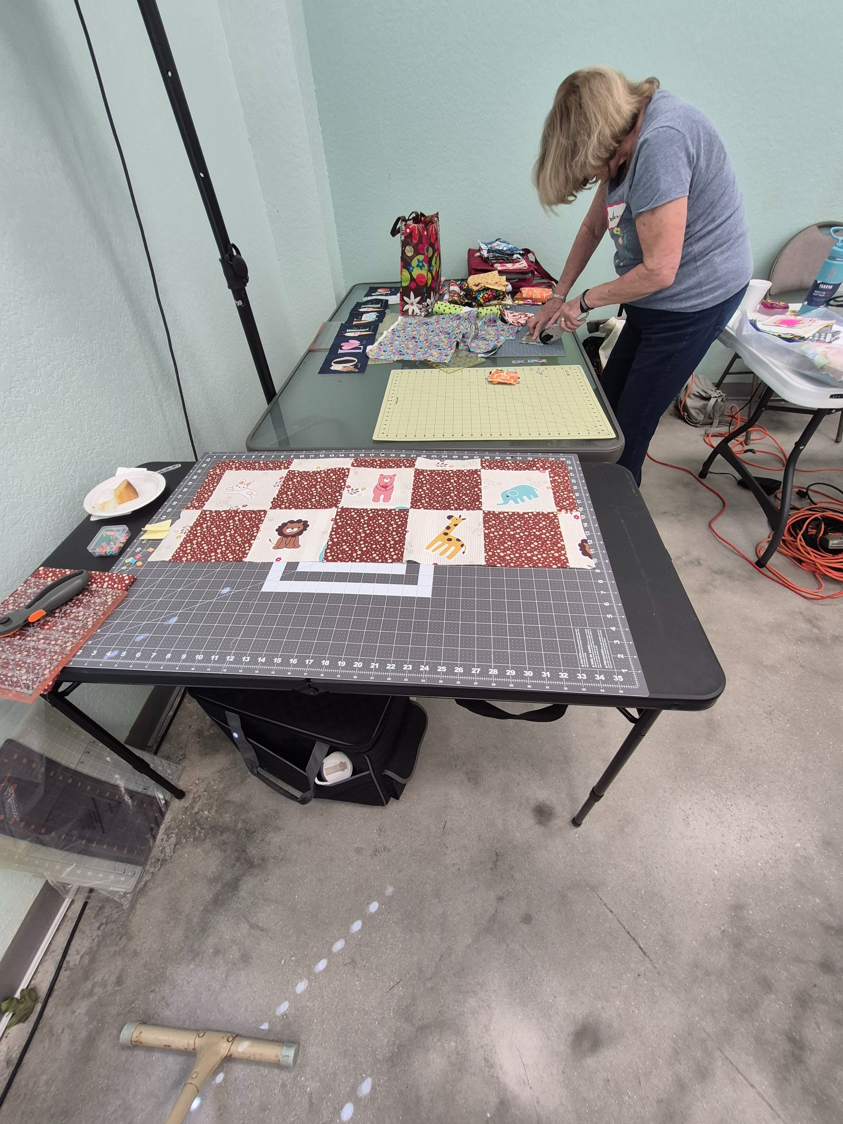 Meanwhile, across the room, at one of the dedicated cutting stations, Susan was at work with the focused energy of someone who has made peace with the fact that precision is not a suggestion but a sacred oath.